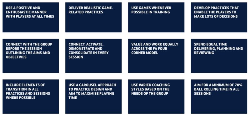 The FA emphasizes that these principles provide a consistent framework for designing and delivering all coaching sessions across England: