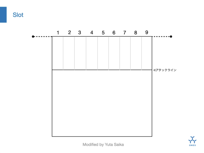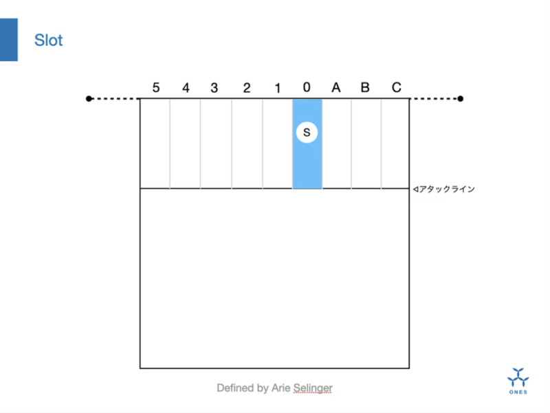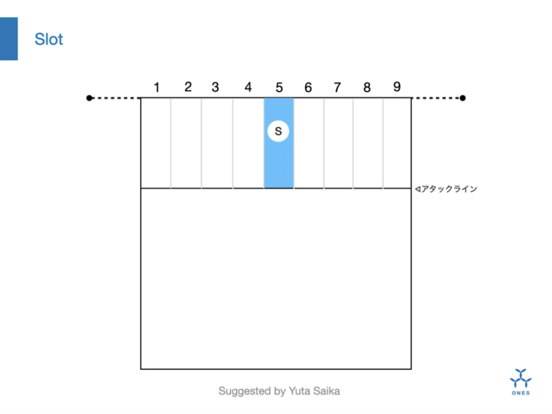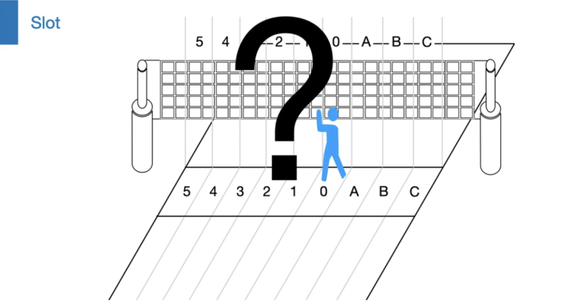 The Slot System is a linguistic and spatial framework that divides the width of the court into nine sections. Each slot is 1 meter wide, extending from the center line to the attack line.
