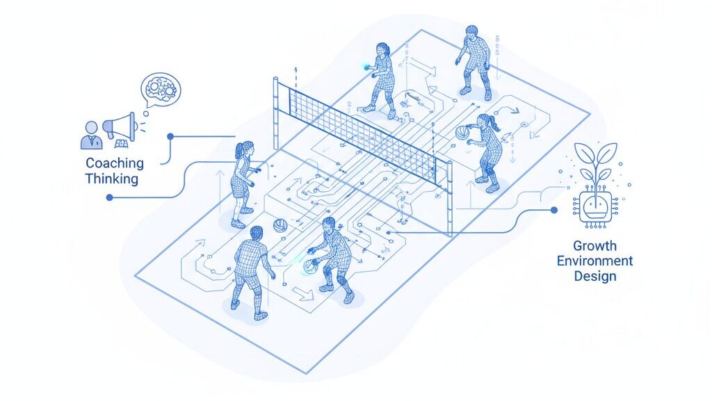 バレーボール指導 | ユース育成 | コーチング技術 | コートマネジメント | システム戦術 | 成長最大化 | 長期育成 | LTAD | 目的志向型ドリル | 戦略的グルーピング | 環境デザイン |
